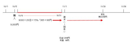 みなさんこんにちは、ひでえぬです。 それでは、今回の支払いの手数料を計算してみましょう。 なお、前回はわかりやすくするために利息の計算を「月割り」で行いましたが、実際の計算は「日割り」で求められます。 具体的には、 (前回)15%×月数÷12(ヶ月)…