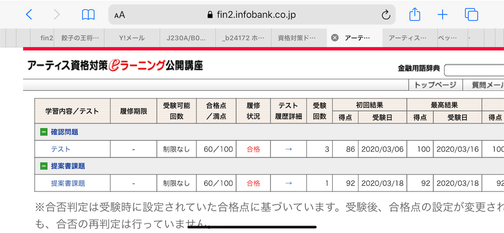 合格の場合特に連絡がないとのことなので、毎日e-ラーニングのページにログインして確認していましたが音沙汰なし。